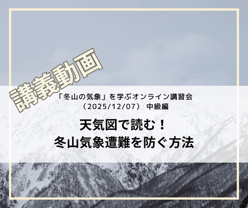 「冬山の気象」を学ぶオンライン講習会講義動画:中級編「天気図で読む!冬山気象遭難を防ぐ方法」(2025/12/07開催・収録)