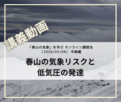 「春山の気象」を学ぶオンライン講習会講義動画:中級編「春山の気象リスクと低気圧の発達」(2026/03/08開催・収録)